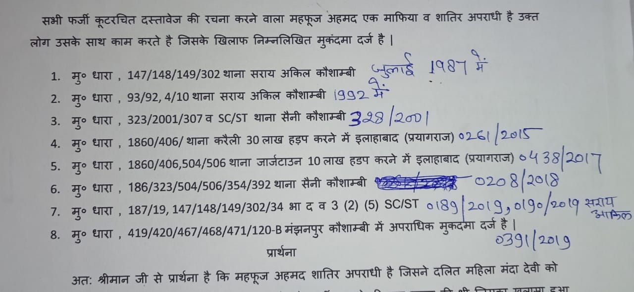 महफूज़ पर दर्ज एफआईआर की फहरिस्त काफी लंबी है बावजूद इसके वह इस तरह की वारदातों को बड़े आसानी से अंजाम देते चला आरहा है।उसके खिलाफ़ जूलाई 1987 में पहला मामला हत्या का दर्ज हुई था यह हत्या एक पूरे परिवार का नरसंहार करने जैसी और आपसी दुशमनी का नतीजा था जिसमें धारा 147,148,302 के तहेत मामला दर्ज किया गया था जबकि दूसरा मामला 1992 में धारा 93,92,4,10 के तहेत दर्ज किया था तीसरा मामला संख्या 328 है जो साल 2001 में सरायआकिल थाना में धारा 307 के तहेत दर्ज किया था चौथा मामला प्रयागराज में एफआईआर संख्या 0261 है जो 30 लाख रूपए हड़पने के कारण 2015 में दर्ज किया गया था इसी तरह से महफूज़ के खिलाफ कुल 8 मामले दर्ज किए गए हैं कई मामलों में महमूद भी बराबर का हिस्सेदार रहा।